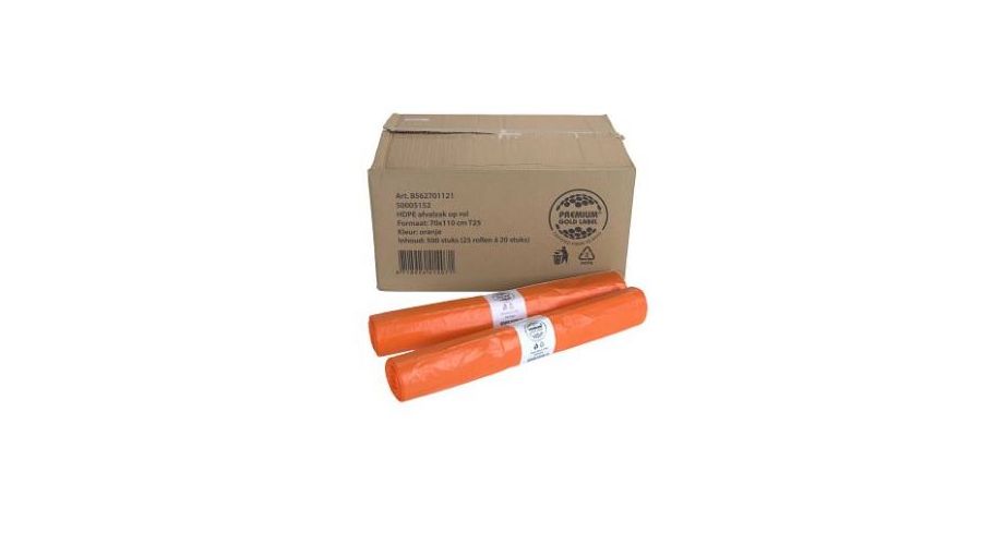 Afvalzak HDPE T25 70 x 110 cm oranje 25 x 20 stuks
