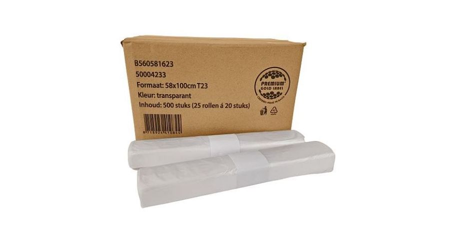 Afvalzak HDPE T23 58 x 100 cm transparant 20 x 25 stuks