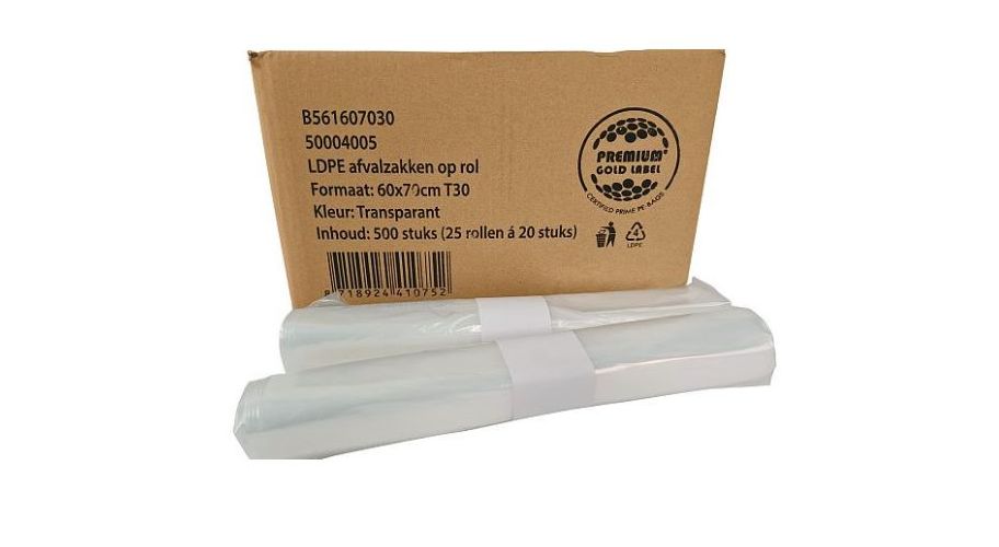 Afvalzak LDPE T30 60 x 70 cm transparant 20 x 25 stuks