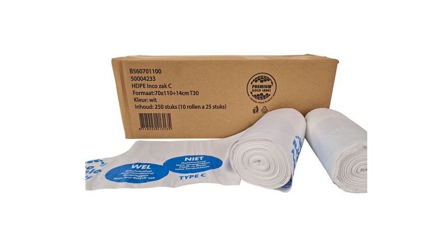 Incozak HDPE T30 70x110+14cm type C wit 10 x 25 stuks