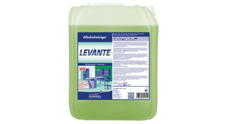 De Dr. Schnell Levante 10L is een krachtige, alcoholgebaseerde glansreiniger, speciaal ontwikkeld voor het reinigen van alle waterbestendige oppervlakken. Deze reiniger is ideaal voor dagelijks gebruik en zorgt voor een streeploos en glanzend resultaat. Dankzij de alcoholbasis droogt het snel op en laat het geen residu achter.
