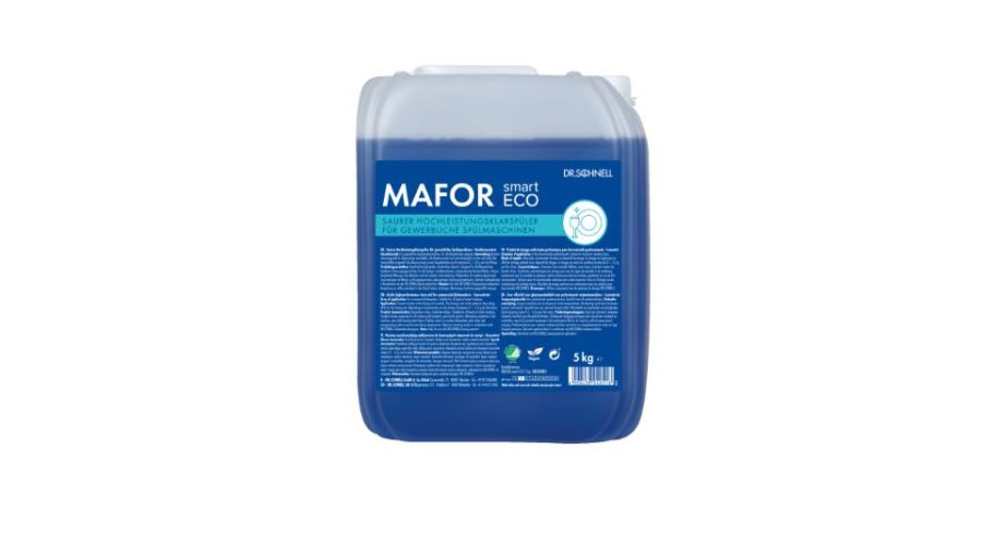De uitstekende droogeigenschappen van MAFOR Smart ECO zorgen voor een snel en efficiënt droogproces, wat resulteert in een verhoogde productiviteit in professionele keukens. In combinatie met DR.SCHNELL-vaatwasmiddelen worden optimale spoelresultaten bereikt. Het product is ingediend voor EU Ecolabel-certificering en draagt bij aan milieubewuste reiniging door vermindering van waterverontreiniging en afval, mits de doseringsinstructies worden gevolgd. De dosering wordt automatisch geregeld via het doseersysteem en ligt afhankelijk van de omstandigheden tussen 0,1 – 0,3 g per liter water.