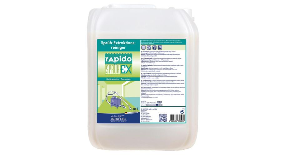 Dr. Schnell Rapido Spruh-ex is een krachtige tapijtreiniger, speciaal ontwikkeld voor de dieptereiniging van alle waterbestendige, textiele oppervlakken en bekleding. Dit product verwijdert effectief vuil, vet, voedselresten, haar- en lichaamsvetten, stof, roet en nicotine. Dankzij de geconcentreerde formule is het zeer efficiënt en zuinig in gebruik, wat het ideaal maakt voor zowel huishoudelijk als professioneel gebruik.