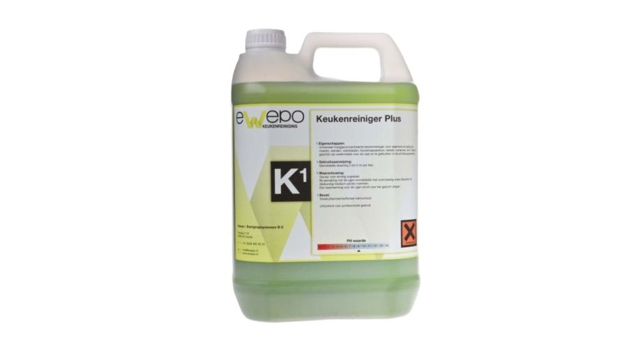 Ewepo Keukenreiniger Plus 2 x 5 liter is een krachtige, neutrale reiniger die speciaal is ontwikkeld voor het grondig reinigen van keukens in professionele omgevingen. Dankzij de uitgebalanceerde formule verwijdert dit product moeiteloos vet, eiwitresten en ander hardnekkig vuil van uiteenlopende oppervlakken zoals werkbladen, vloeren, wanden, keukenapparatuur, ketels en transportmiddelen. De neutrale pH-waarde maakt het veilig voor gebruik op gevoelige materialen, zonder risico op aantasting of verkleuring.