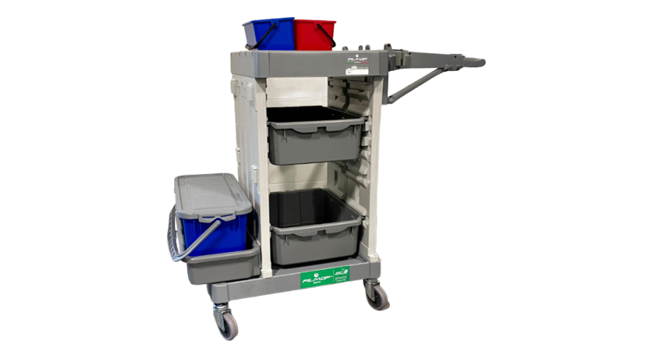 Met de Filmop Werkwagenconfig. 3 Compact ben je verzekerd van een georganiseerde en efficiënte werkomgeving. Het biedt alles wat je nodig hebt om snel en effectief schoon te maken, van het vervoeren van materialen tot het opbergen van gereedschap. Perfect voor gebruik in ziekenhuizen, hotels, kantoren of andere commerciële omgevingen waar snelheid en organisatie belangrijk zijn.