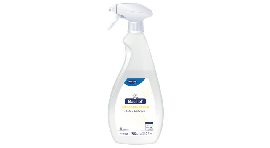 Bacillol 30 Sensitive Foam is een gebruiksklare desinfecterende schuimspray op basis van ethanol (30%), speciaal ontwikkeld voor het veilig en effectief reinigen van gevoelige oppervlakken. De formule is vrij van kleurstoffen en parfums, waardoor het risico op huidirritaties of allergische reacties minimaal is. Dankzij de milde samenstelling is het product bijzonder geschikt voor alcoholgevoelige materialen zoals acrylglas, kunststoffen, gelakte oppervlakken en medische apparatuur.