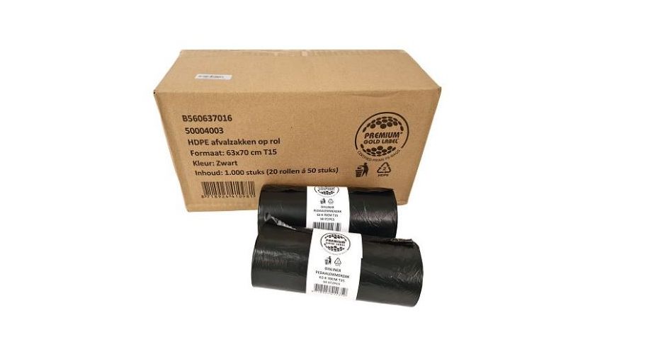 Afvalzak HDPE T15 63 x 70 cm zwart 20 x 50 stuks