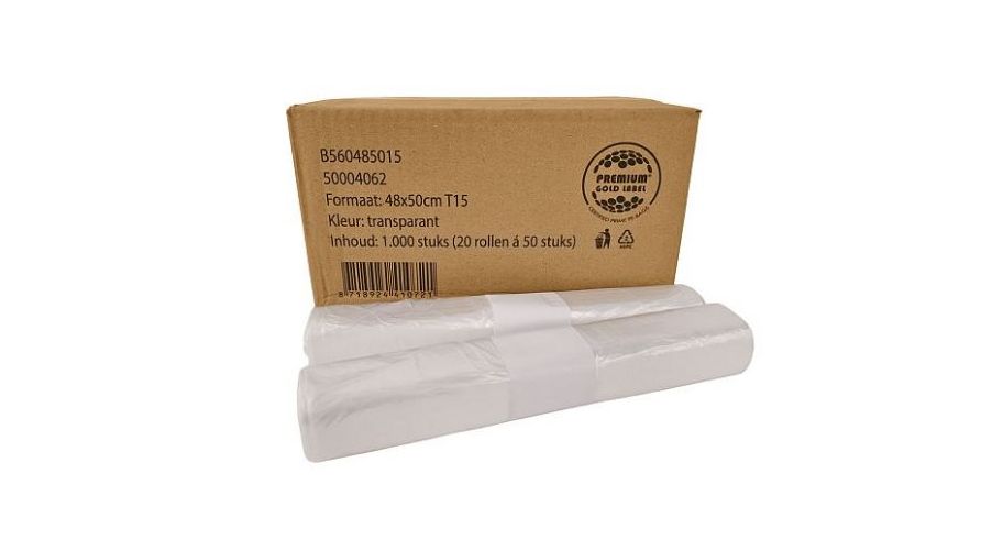 Afvalzak HDPE T15 48 x 50 cm transparant 20 x 50 stuks