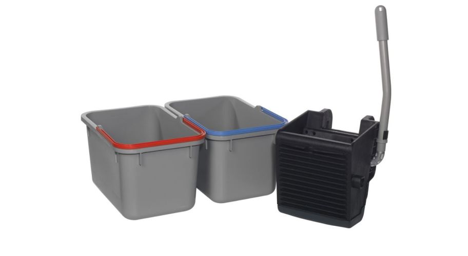 - Twee emmers van 17 liter met gekleurde handvatten (blauw en rood) voor het scheiden van schoon en vuil water.