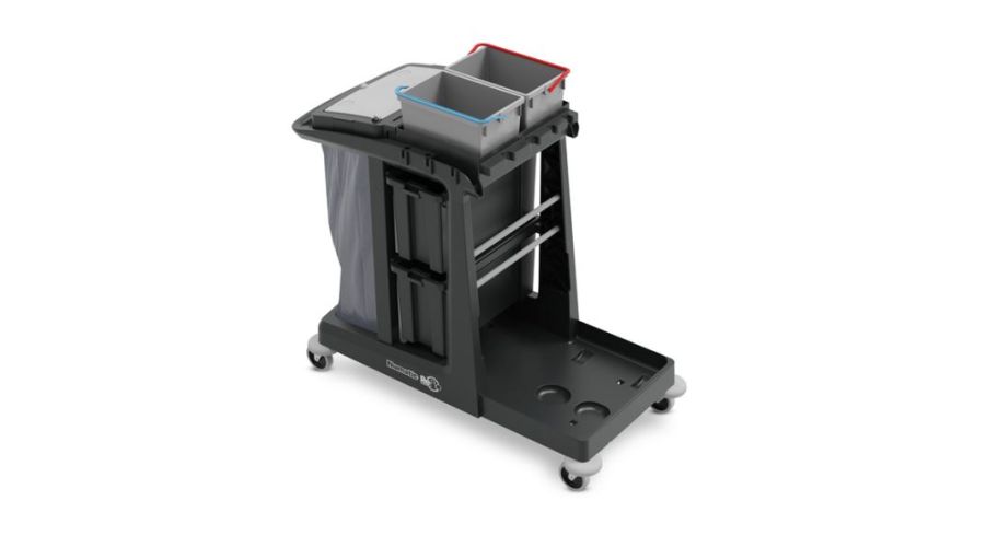 Met de praktische indeling van de werkwagen kun je gemakkelijk schoonmaakmiddelen, accessoires en afval gescheiden houden. De wagen is uitgerust met meerdere opbergvakken en emmers, zodat je alles bij de hand hebt tijdens het schoonmaken. Het innovatieve Eco-Matic-systeem zorgt ervoor dat de wagen efficiënt kan worden gebruikt met minimale inspanning. De wielen van de werkwagen maken het eenvoudig om deze snel en zonder moeite van de ene naar de andere ruimte te verplaatsen.