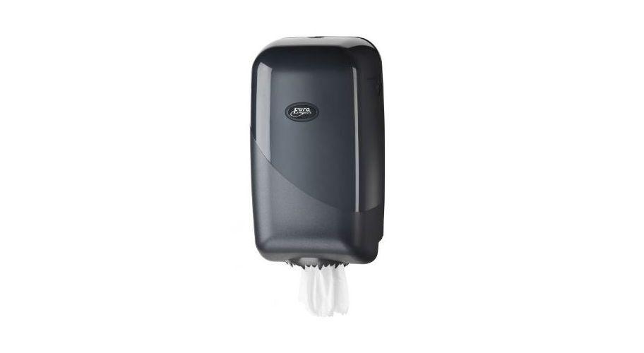 De Pearl Black poetsroldispenser mini van Euro Products is een compacte en efficiënte oplossing voor het doseren van poetsrollen. Deze dispenser is ontworpen voor gebruik met centrefeed papierrollen, wat betekent dat het papier vanuit het midden van de rol wordt getrokken. Dit zorgt voor een hygiënische en gemakkelijke manier om papier te pakken, ideaal voor drukbezochte omgevingen zoals horecagelegenheden en buitendienst.