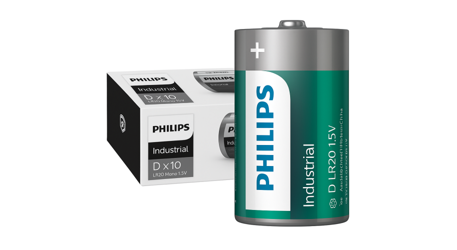 De Philips Industrial Alkaline batterijen gaan tot vijf keer langer mee dan standaard batterijen, waardoor ze een kosteneffectieve keuze zijn voor intensief gebruik.