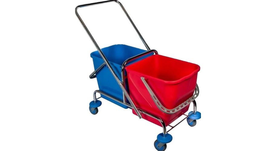 De rolemmer is uitgerust met een ergonomische duwbeugel en soepel rollende wielen, waardoor deze eenvoudig te verplaatsen is, zelfs wanneer beide emmers volledig gevuld zijn. Dit maakt het systeem bijzonder geschikt voor gebruik in grotere ruimtes zoals scholen, zorginstellingen, kantoren en horecagelegenheden. De stabiele constructie voorkomt kantelen tijdens het verplaatsen, terwijl de open structuur het wisselen van emmers snel en eenvoudig maakt.