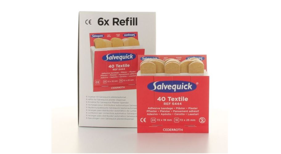 De Salvequick 240 pleisters 6444 zijn hoogwaardige textielpleisters, ontworpen voor gebruik in pleisterautomaten. Deze navullingen bestaan uit zes cassettes, elk met 40 elastische en huidvriendelijke pleisters. De pleisters zijn verkrijgbaar in twee formaten: 24 stuks van 72 mm x 19 mm en 16 stuks van 72 mm x 25 mm. Dankzij hun grote kleefkracht en rekbaarheid zijn deze pleisters ideaal voor verwondingen aan bewegende lichaamsdelen, zoals vingers en knieën.