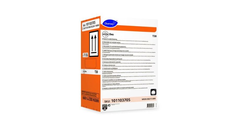 Suma Des T30 safepack is een mild alkalisch bleekmiddel op basis van hypochloriet, speciaal ontwikkeld voor gebruik in grotere meertanksmachines. Dit product werkt uitstekend in combinatie met het vaatwasmiddel Suma Forte Plus L54, wat zorgt voor een effectieve verwijdering van zetmeel, vetten en alle soorten vlekvorming. Dankzij de hoge concentratie is Suma Des T30 zuinig in gebruik en biedt het een betrouwbare reiniging.