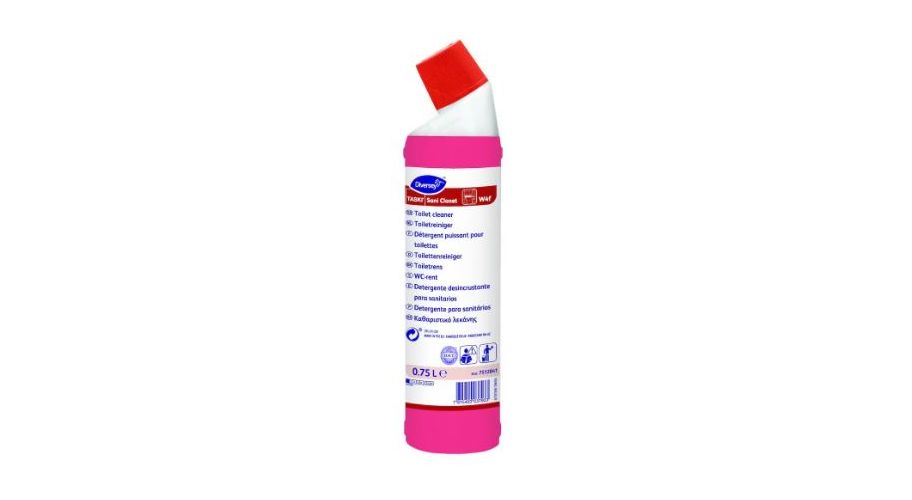 Taski Sani Clonet is een gebruiksklare, krachtige toiletreiniger en ontkalker, verpakt in flessen van 750 ml en geleverd in een set van 6 stuks. Dit product is speciaal ontwikkeld voor de effectieve verwijdering van kalkaanslag in toiletpotten en urinoirs. Dankzij de combinatie van verschillende zuren biedt Taski Sani Clonet een snelle en efficiënte oplossing voor het ontkalken van sanitaire oppervlakken.