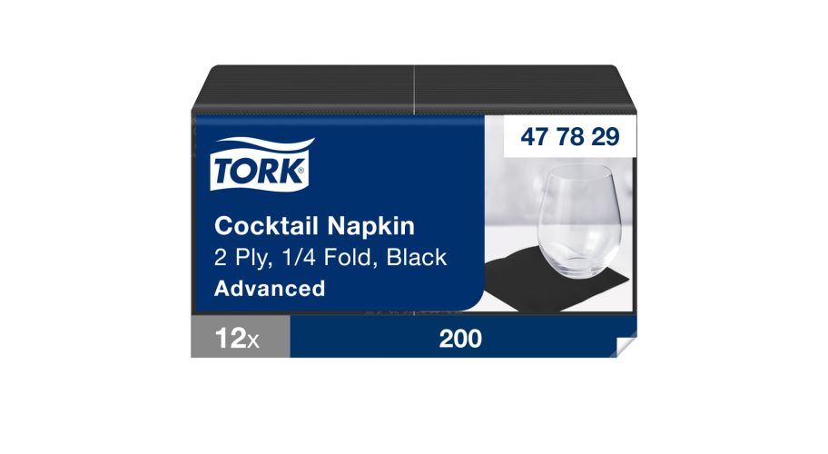 Tork Cocktailservet advanced 1/4 vouw 2-laags zwart - 12 x 200 stuks