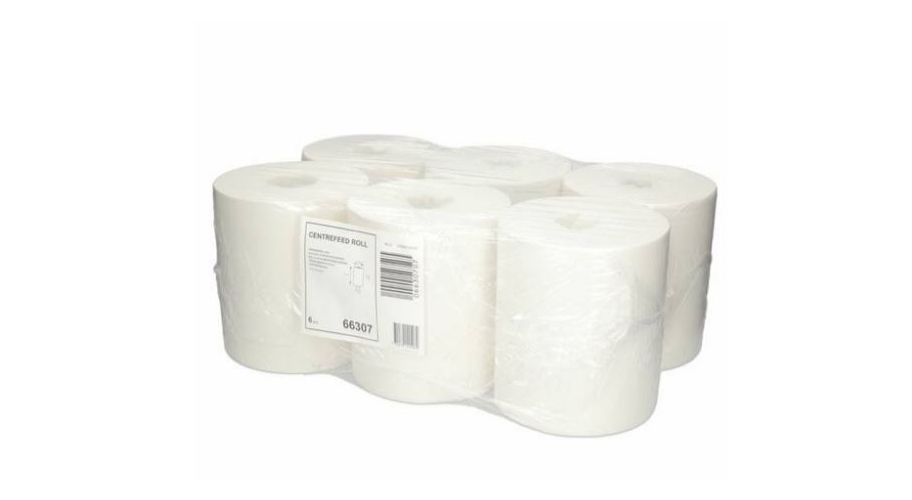 Poetsrol centerfeed zonder kern 1-laags wit - 6 x 275 meter