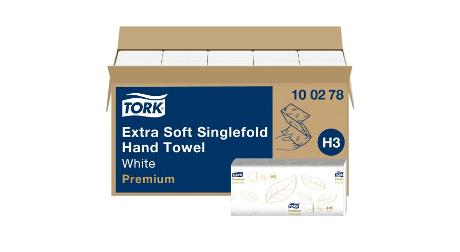 De Tork Extra Soft Singlefold Handdoeken H3 zijn een uitstekende keuze voor het efficiënt en hygiënisch drogen van handen in diverse commerciële omgevingen. Deze handdoeken zijn gemaakt van absorberend en scheurbestendig materiaal, waardoor ze effectief zijn in het drogen van handen en tegelijkertijd voordelig zijn dankzij het kleinere formaat. De Tork Easy Handling® verpakking maakt het openen en opslaan van bundels papieren handdoeken eenvoudig, wat prettig is voor uw personeel.