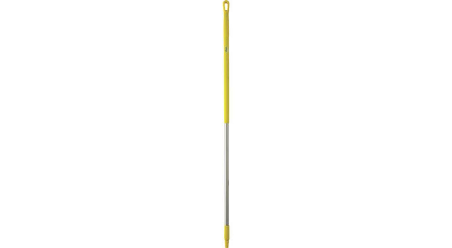 Het materiaal van de Vikan handgreep bestaat uit roestvrij staal en polypropyleen, wat zorgt voor een uitstekende chemicaliënbestendigheid en een lange levensduur. De ergonomische vormgeving van de handgreep biedt extra comfort tijdens het gebruik, waardoor de belasting op de handen en polsen wordt verminderd. De gele kleur maakt het gemakkelijk om de handgreep te identificeren en te onderscheiden van andere schoonmaakgereedschappen. De afmetingen van de handgreep zijn 1510 x 31 mm, wat zorgt voor een stevige en comfortabele grip.