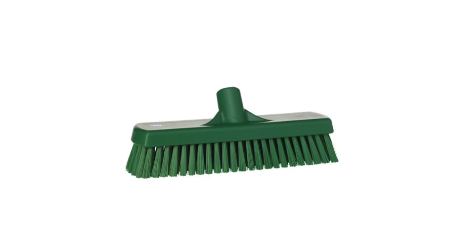 De Vikan schrobber met harde borstelharen in de kleur groen is een uitstekend hulpmiddel voor het grondig reinigen van harde vloeren zoals epoxy, tegels en cement. Met een afmeting van 305 x 85 x 110 mm is deze schrobber compact en gemakkelijk te hanteren, wat bijdraagt aan de efficiëntie van de schoonmaakwerkzaamheden. De lange harde haren van de borstel zorgen ervoor dat de schrobber ook makkelijk in gaten en voegen komt om opgehoopt vuil te verwijderen, wat zorgt voor een grondige reiniging van zelfs de moeilijk bereikbare plaatsen.
