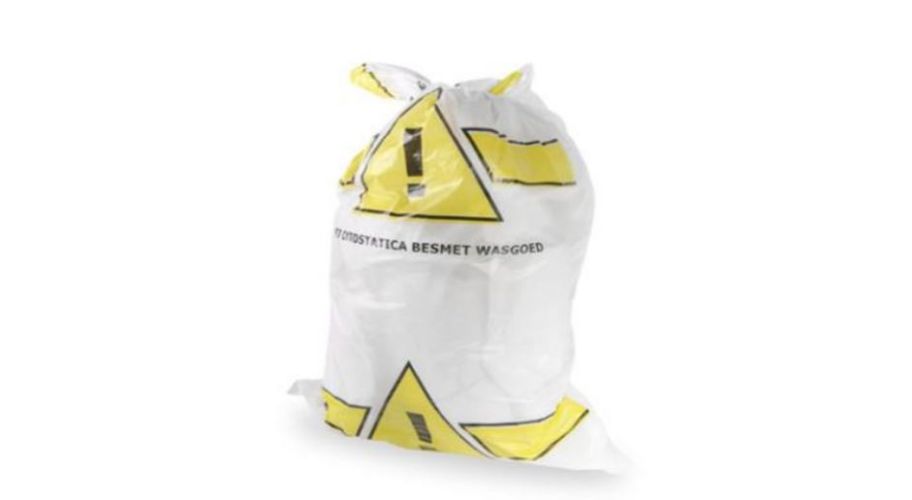 De waszak voor cytostatica van HDPE in wit, met afmetingen van 58 x 100 cm, is speciaal ontworpen voor het veilig afvoeren van afval dat besmet is met cytostatica. Deze zakken zijn gemaakt van High Density Polyethyleen (HDPE), wat zorgt voor een sterke en duurzame verpakking. Ze zijn bedrukt met het cytostatica-logo en de tekst "Cytostatica handel volgens procedure", wat duidelijk aangeeft dat de inhoud op een specifieke manier moet worden behandeld.