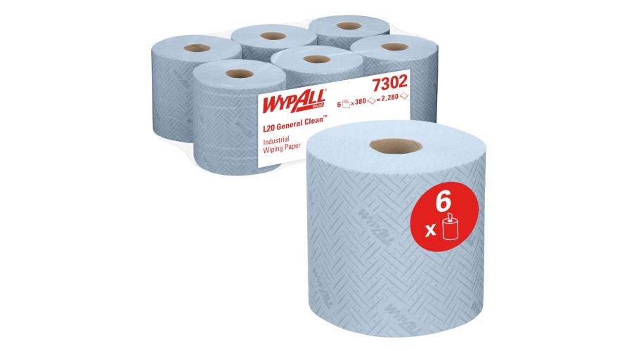 Wypall Poetsrol L20 centerfeed 2-laags blauw 6 x 380 vellen