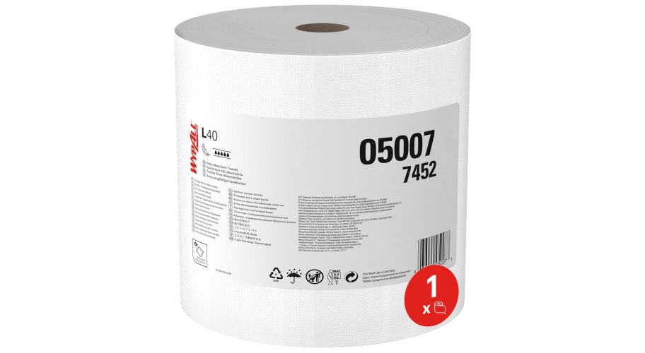 De Wypall L40 poetsrol wit is een hoogwaardige 1-laags poetsdoek, ontworpen voor eenmalig gebruik. Deze doeken zijn gemaakt van DRC basismateriaal, een speciaal weefsel dat zachtheid en kracht perfect samenbrengt. Dankzij deze unieke samenstelling zijn de doeken sterk absorberend, wat ze ideaal maakt voor industriële taken en het opnemen van grote hoeveelheden gemorste vloeistoffen.